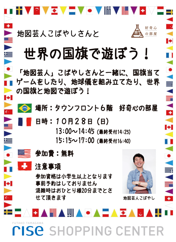 当社のtwitterでお馴染みの地図芸人こばやしさんが好奇心の部屋二子玉川店さんでイベントを行います。みなさん是非遊びに来てください。場所は二子玉川ライズタウンフロント6Fです。