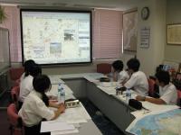 「GISとはどのようなものですか?」「3次元地図はどのように作っているのですか?」など難しい質問が多数用意されていて、皆さんは私たちの説明を真剣に聞いてくれました。雰囲気にも慣れた後半には立体地図を興味津々で触れていて、地元関市を探しあて、触りながら驚き、感心していました。彼らの純粋な気持ちは我々に改めて業務への心構えを再認識させてくれ、また今回の訪問が彼らの今後の人生の中で僅かばかりでも一助になればと願っています。