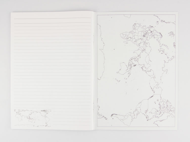 裏表紙の内側は世界の白地図を掲載、書き込んで学習ができます。
