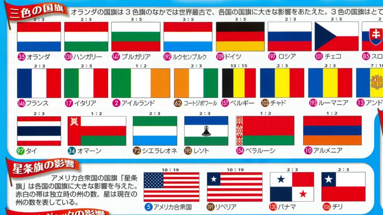「三色の国旗」「星条旗の影響を受けている」などのグループ分けをしてあります。とても興味深いですね!