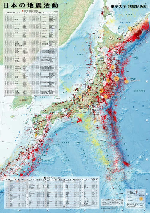 ・世界の震源分布地図と並べれば,日本の震源の細部がよく分かります。