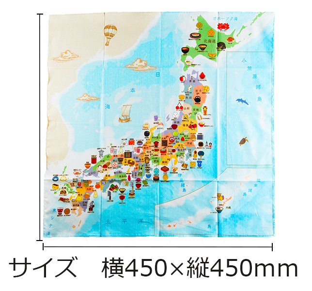大人気の「にほんちず」シリーズから、ハンカチが出来ました!大判で色々な用途に使えるハンカチです。