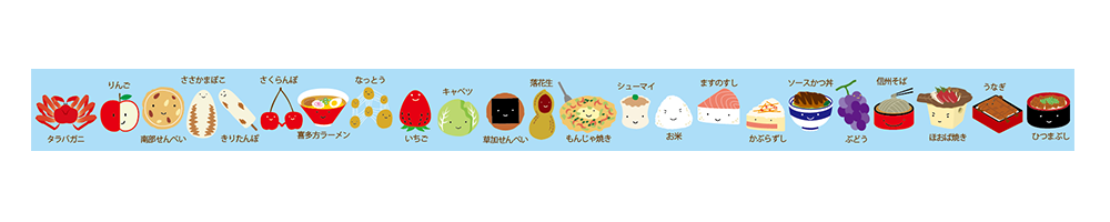 かわいい名産品のイラストのマスキングテープ