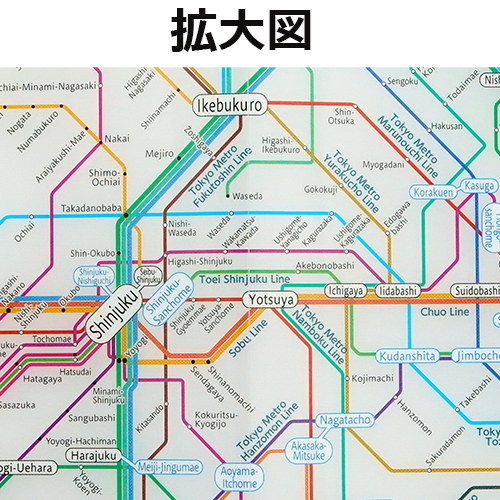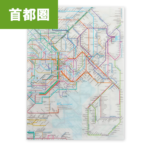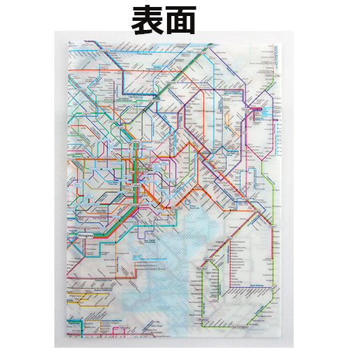 東京近郊のJR・私鉄・地下鉄・モノレールを含む路線図を掲載したA3二つ折りのクリアファイルです。