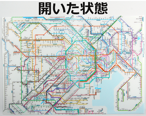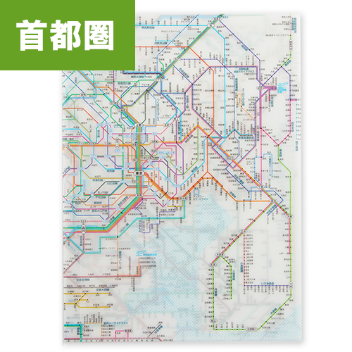 東京近郊のJR・私鉄・地下鉄・モノレールを含む路線図を掲載したA3二つ折りのクリアファイルです。