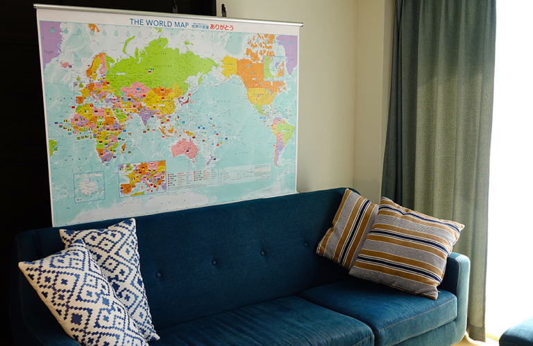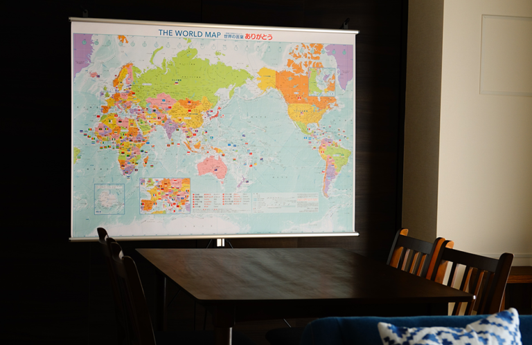 世界地図タペストリーがあればすぐに場所を確認できます。