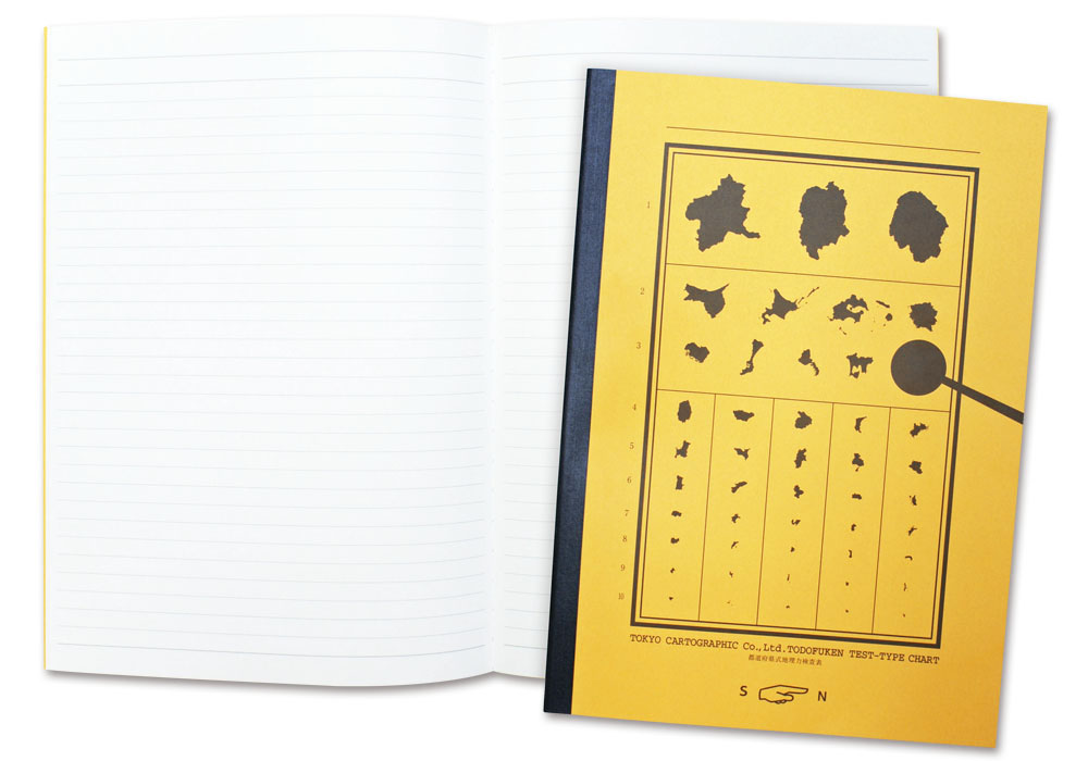 一見、視力検査表?とも思えるこのノート、よく見ると並んでいるのは都道府県のシルエット。名付けて「都道府県式地理力検査表」です。都道府県シルエットは東西南北の向きがバラバラ。北の方角を当てるゲーム形式になっています。 小さくなった都道府県は名前を当てるだけでも高難度!ぜひ地理力検査、挑戦してみてください。