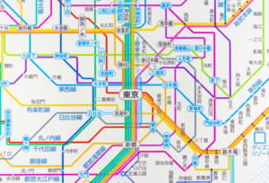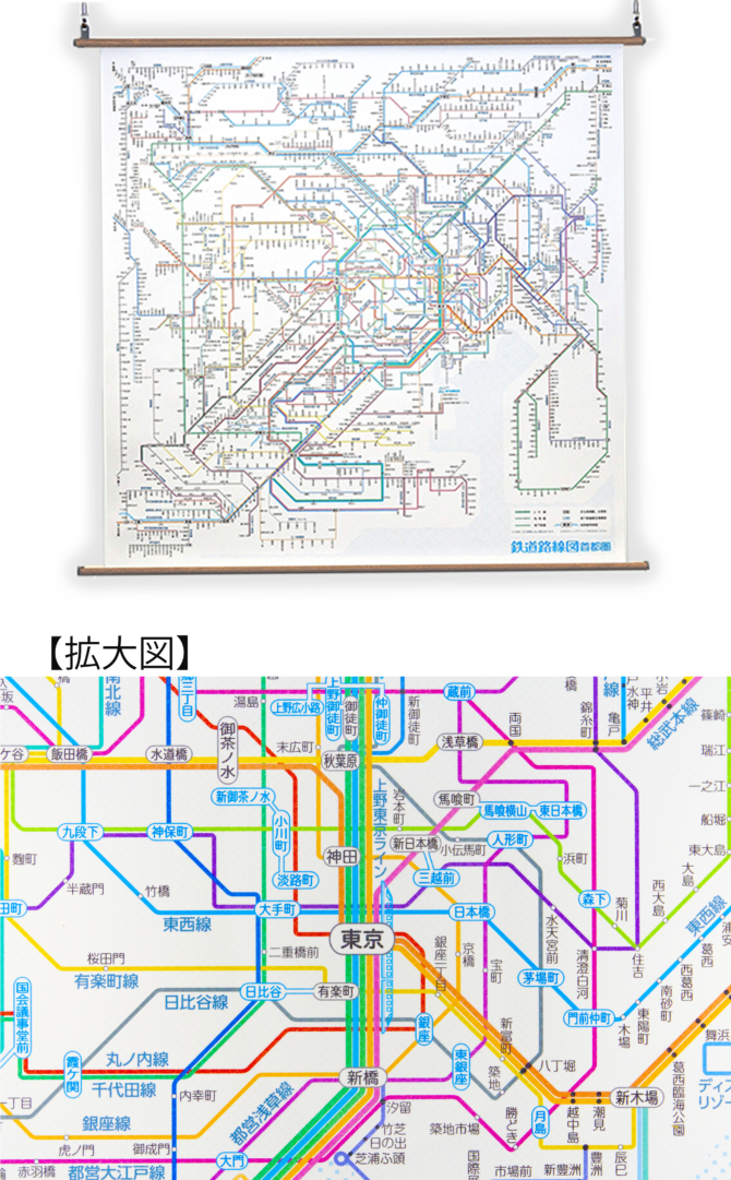 JR、私鉄、地下鉄が全て掲載されたカラフルな路線図