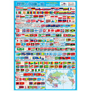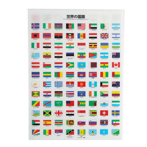 世界の197カ国の国旗を色や模様でグループ分けした一覧表のポスターは国旗の模様の意味、地域ごとの特色、宗教との関係、歴史との関係など、様々な視点から国旗を解説しています。ハンカチやクリアファイルを普段から使用することで、世界の国々に関心を持つきっか作りになるかもしれません。