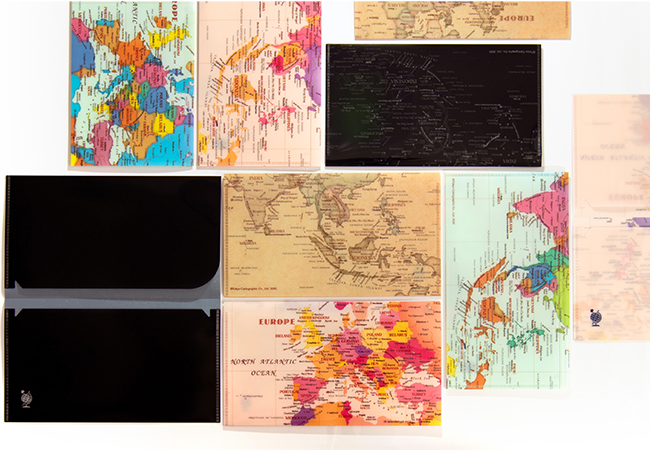 世界地図をモチーフにした落ち着いたデザインのステーショナリーは見た目のおしゃれ感だけでなくとっても実用的。